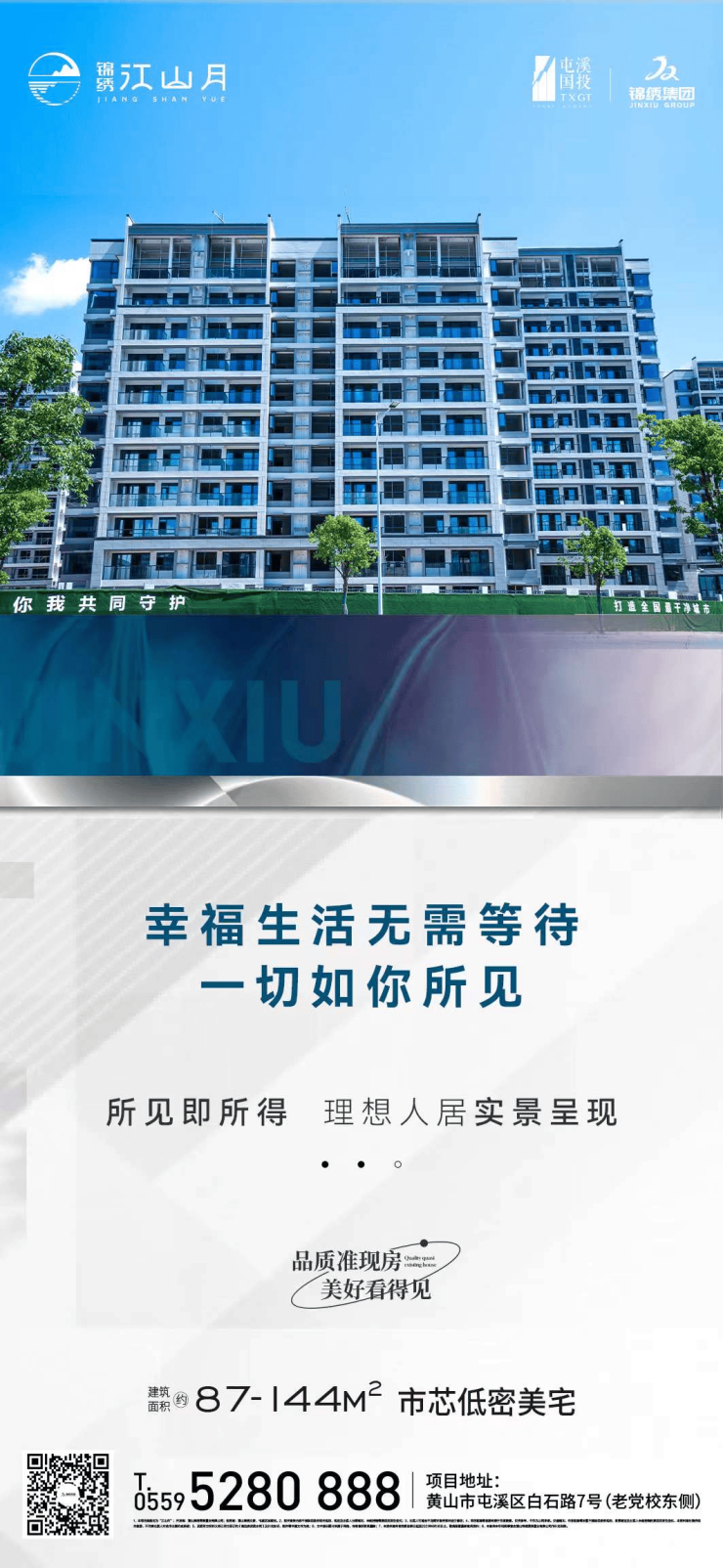 幸褔生活无需等待,一切如你所见。锦绣江山月所见即所得,理想人居实景呈现。建面约87-144㎡市芯低密美宅热售中,均价12500元/㎡。