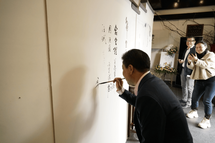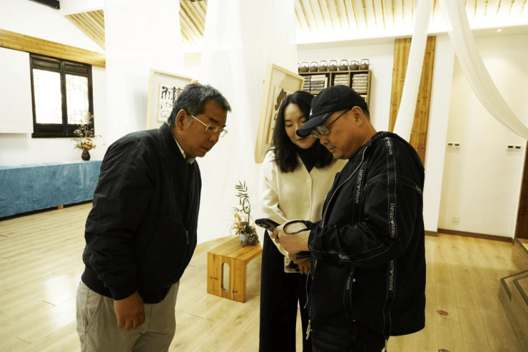 展览通过现代化的展示手法,将书法融入学社的日常氛围,增加了观展的亲和力与互动性。展览主题“徽墨·百味”不仅象征了书法创作中常用的墨,更蕴含着徽州与黄山的地方文化特色,传递出传统文化的深厚意蕴。