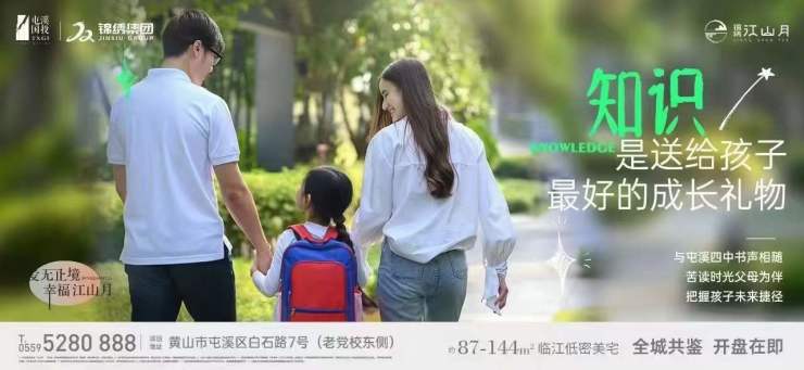 锦绣江山月深知教育的重要性,择址阳湖正脉,周边屯溪江南幼儿园、江南实验小学、屯溪四中等学校环伺,全龄优质教育护航,为孩子未来铺就锦绣前程。