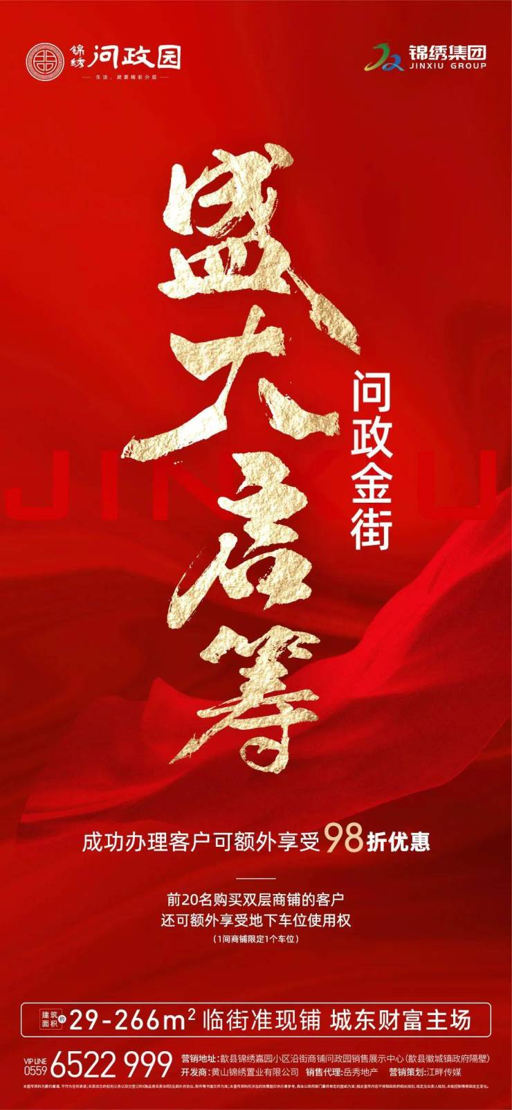数千人大社区临街准现铺锦绣问政园商铺效果图锦绣问政园临街准现铺-金街行知学校、歙县中学等优教林立人潮即是商机,稳定客源擎动日常消费精准定位“铺”就财富锦绣问政园准现铺实景看得见双层铺面积约86-260㎡地址:…
