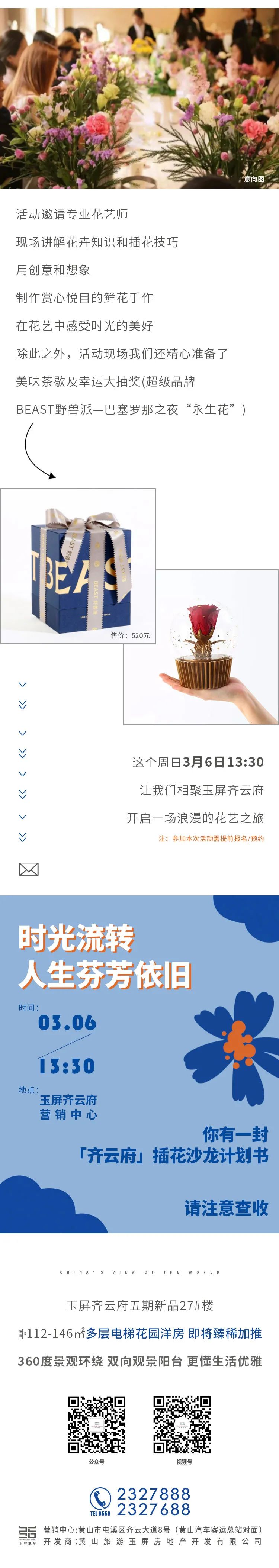 玉屏齐云府丨插花活动即将来袭,免费抽取BEAST野兽派永生花