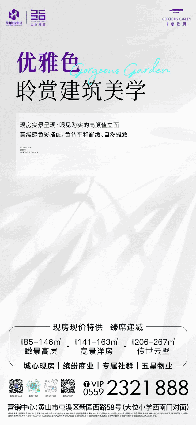 现房现价特供,臻席递减。玉屏紫云府建面约85-146㎡瞰景高层、141-163㎡宽景洋房、206-267㎡传世云墅热售中。