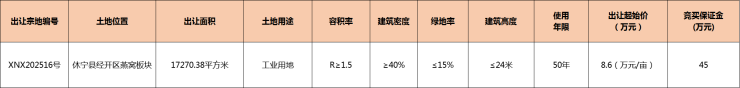 休宁县1宗工业用地挂牌出让