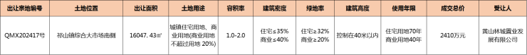 祁门县1宗商住用地底价成交,成交楼面地价为750.9元/㎡