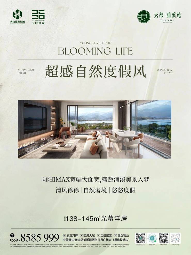 推开窗,是浦溪河的粼粼波光;抬眼处,是黄山的层峦叠翠。天都浦溪苑择址浦溪河畔,将“超感自然度假风”刻进生活肌理。138-145㎡光幕洋房以IMAX级宽幅面宽,把浦溪美景“盛邀入室”,清风穿堂时,连呼吸都浸着自然的舒展。