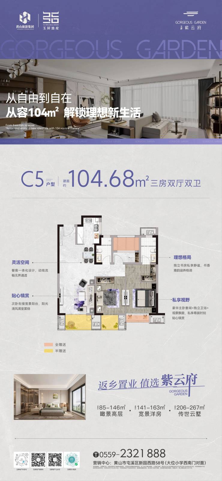 玉屏紫云府建面约104.68㎡的C5户型,作为项目产品线中的主力三房设计,精准贴合黄山本地家庭的居住需求与生活习惯,凭借科学的空间规划与人性化细节打造,成为本地房产市场的高关注度户型。本文结合户型公开资料与主流人居诉求,从功能、品质、空间利用等维度客观分析户型亮点,并解读适配人群,为置业选择提供参考。