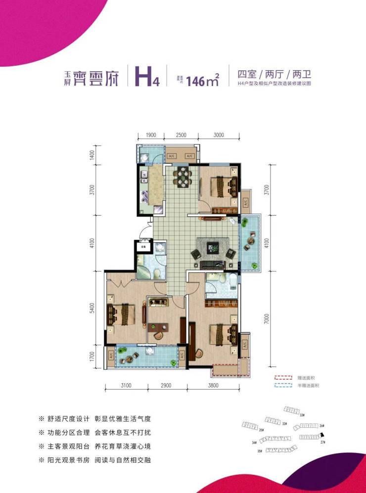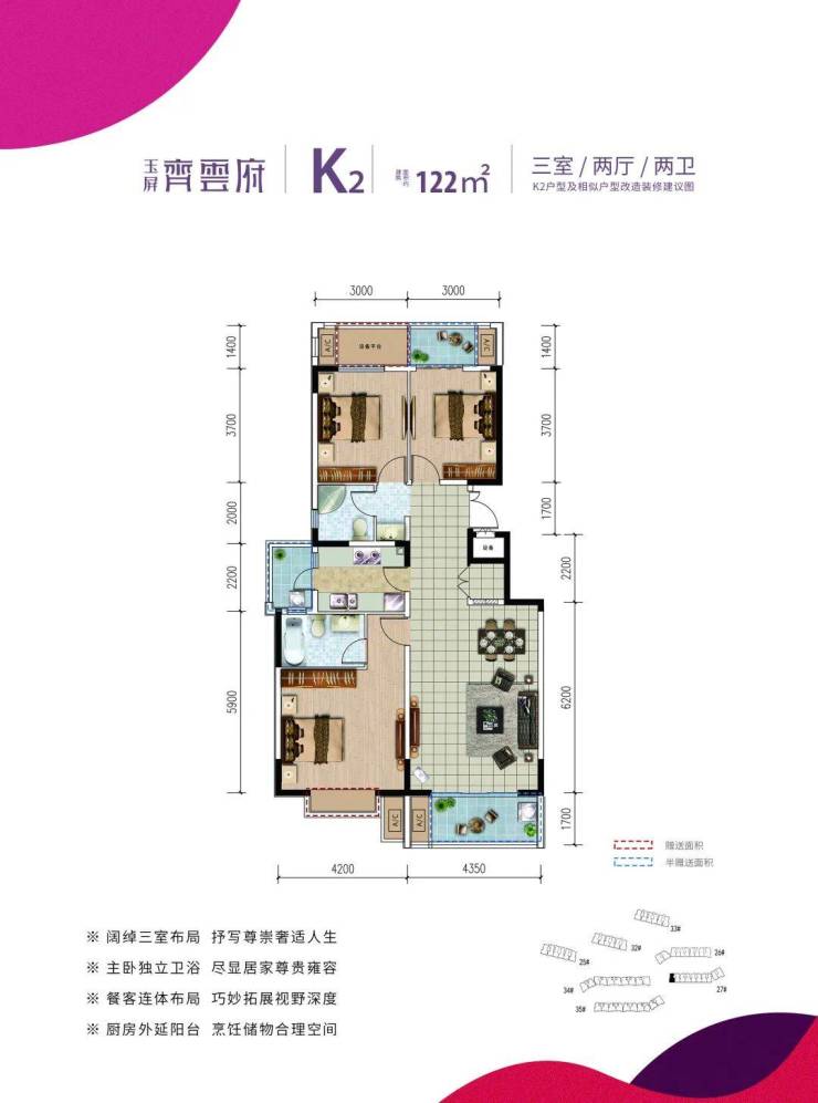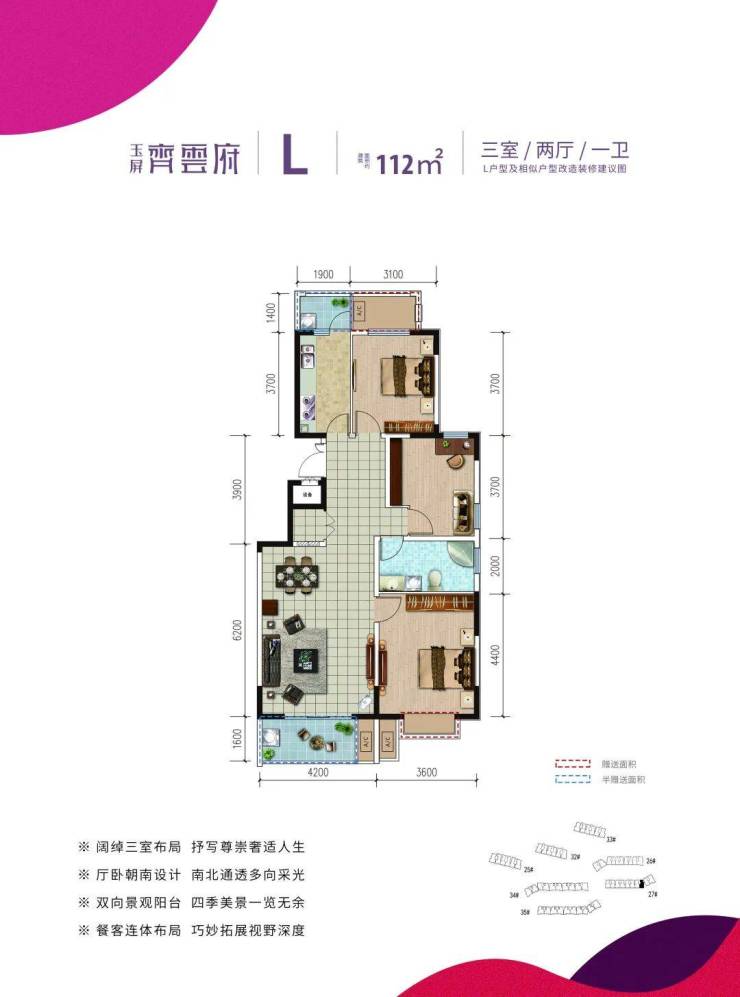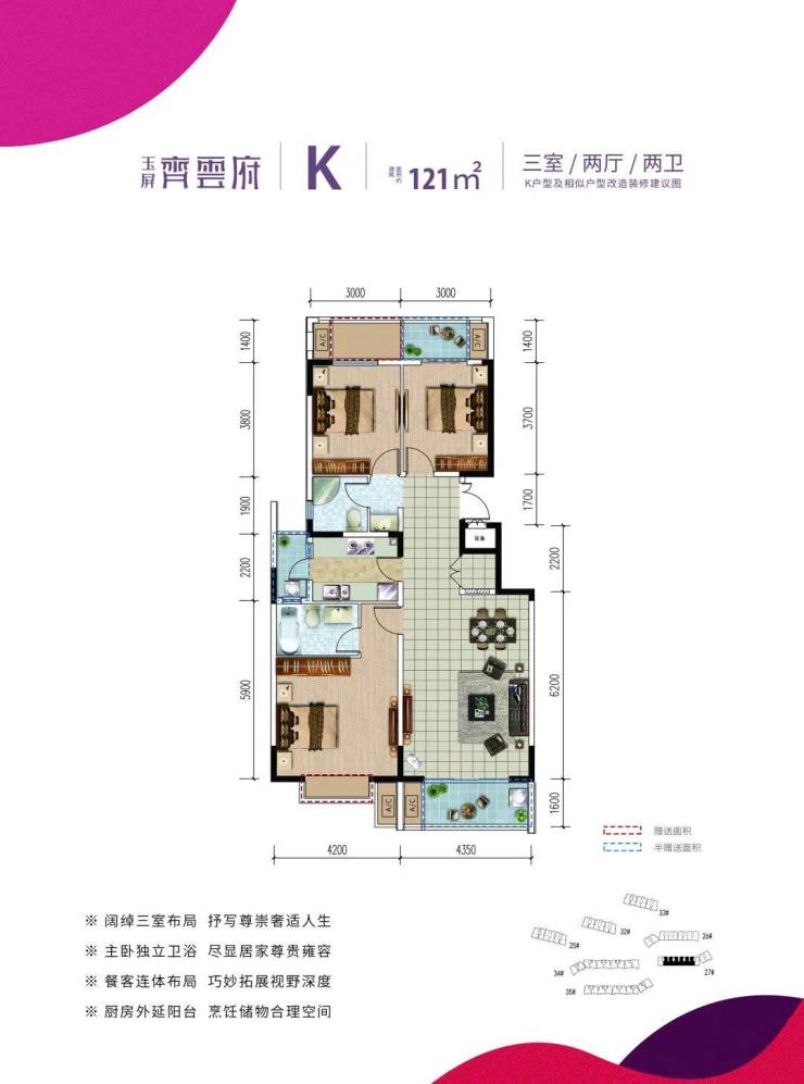 27#楼的一梯两户尊享梯户比,大大提升了归家舒适感,建面约 112-146㎡宽境户型,将餐客厅、阳台连体化布局,豪华主卧、人性化U型厨房、多功能房预留 ...满足实用需求,重新定义生活品质。