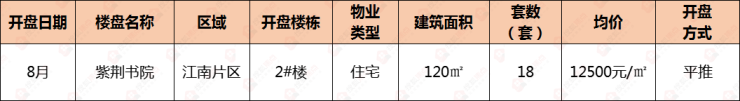 供应方面,8月仅有紫荆书院1盘加推18套住宅房源。值得一提的是,该项目本月成交达两位数,在整体市场偏冷的背景下表现突出,可谓淡季“黑马”。从市场表现来看,各新盘来访量明显减少,高温叠加观望心态,使得客户到访和转化均受到压制,成交周期被进一步拉长。