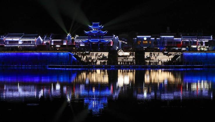 值得一提的是,锦绣江山月北面为屯溪新晋网红景点屯溪河街,吸引众多游客前来观赏。夜幕降临时,灯火辉煌,营造出繁华喧嚣的氛围。而南面则是开阔的视野和远处青山的美景,空气清新,让人们暂时忘却城市的喧嚣和烦恼,享受大自然带来的怡然自得。