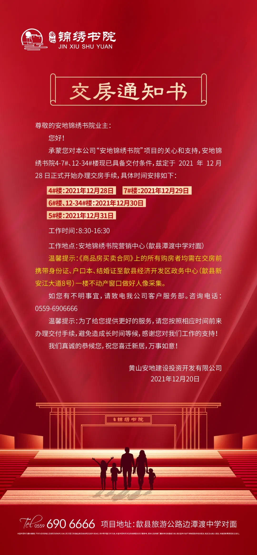 歙县安地锦绣书院丨您有一封交房通知书,请查收!