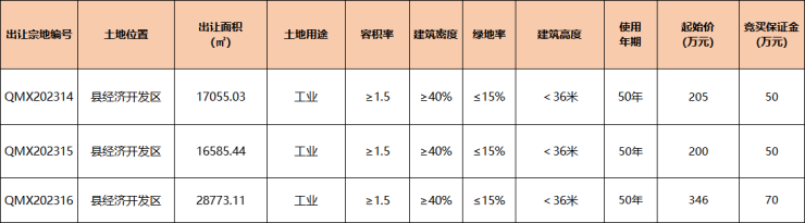 (七)编号QMX202314、QMX202315和QMX202316号地块,按“拿地即开工”模式出让,须按照已评审通过的规划设计方案进行项目投资建设,具体规定详见出让须知等附件文件。