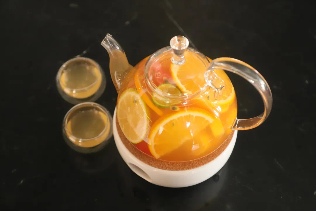 澳橙、芒果、青柠、百香果,四种水果的搭配,再加上清新的茶底,满满一壶的果肉看得见,将水果茶诠释得酣畅淋漓!壶里的每个空间都被水果填满,每件“大块头”水果都能让你感受到它的诚意。