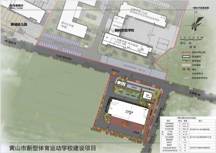黄山市新型体育运动学校建设项目(一期)位于黄山市高新区新城实验学校南侧,建设单位为黄山市体育运动管理中心,地块北侧、东侧为规划道路,项目一期用地面积为4037.62平方米,地块用地性质为中小学用地。