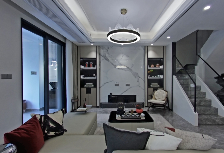 一层郎阔大客厅,一年四季萦绕着欢声笑语,父母认真聆听宝贝的趣事,给人一种迎面而来的温馨感。