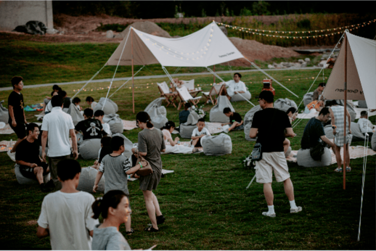 一半是缤纷生活,一半是璀璨星空。溪上桃源精心布置活动场地,自然美景将其包围,徜徉移步间,满是放松和自由的气息。夜幕降临之时,帐篷旁的灯串变成繁星点点,抬头星耀触手可及,低头尽是人间烟火气。