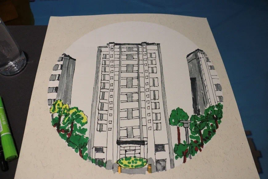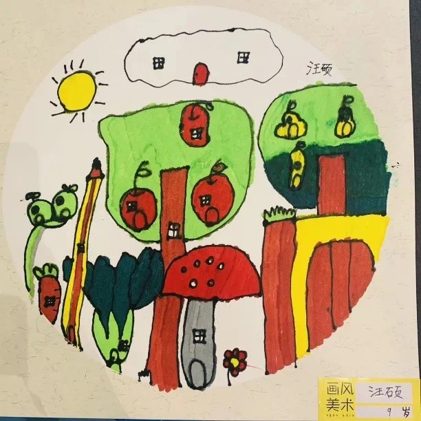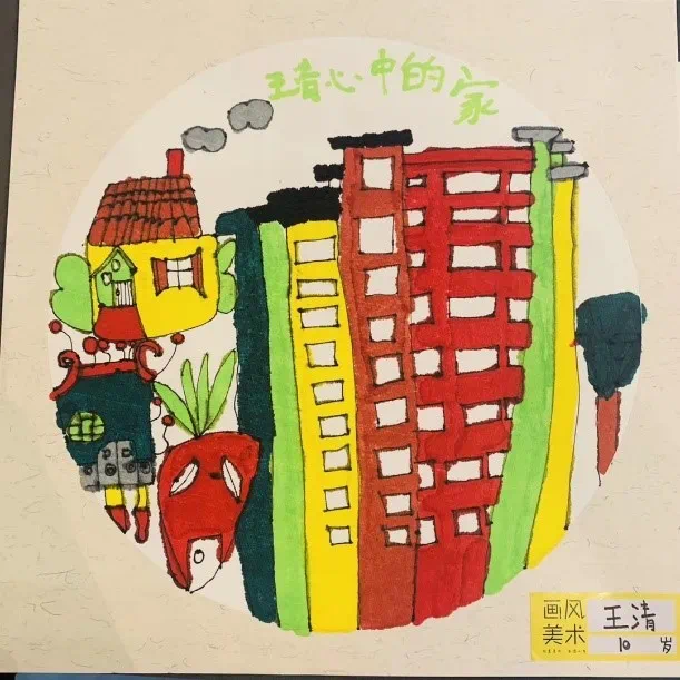 “因为喜欢小院子,想在里面摆上花花草草。”旁边的小朋友把自己的家描绘出一片大自然的景象,她洋溢着笑容介绍梦想中的家的样子:“地上开满奇花异草,被树木包围着的家必须搭乘火箭才可以抵达,这是属于我的专属隧道。”天马行空地挥笔下,是对家的另一番想象。