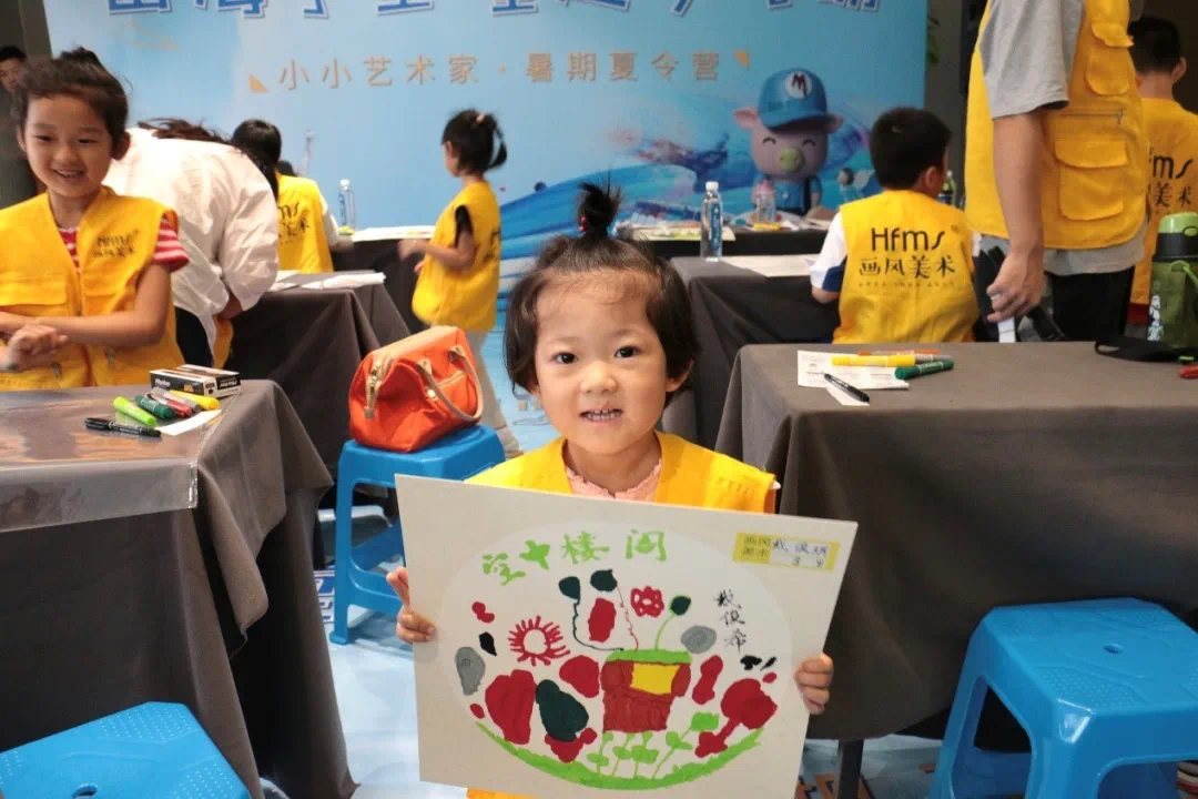 参与的小朋友们在父母的陪同以及老师的指导下圆满完成了绘画作品,并与作品合影留念,这不仅仅是一次单纯的体验,更加培养和提升孩子们热爱家园的理念。
