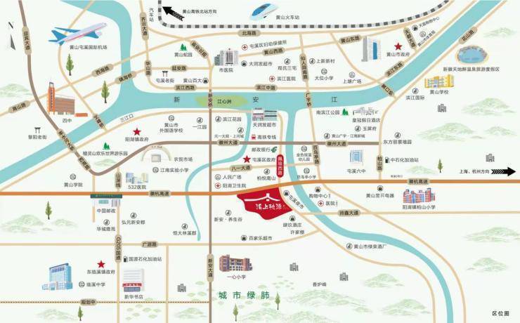 珍贵的事物总是引得人们的竞藏,因为其可遇而不可求的特质显得弥足珍贵。溪上桃源位于黄山市江南政务区核心板块,紧邻市政府和区政府,是城市明确规划的中心商务区,也是城市重点发展的方向。项目三面环山,东临佩琅河,距世界自然、文化双遗产黄山仅约半小时车程,流淌千年的新安江蜿蜒而过,更是程朱阙里的人文泽被之地。得天独厚的自然资源与源远流长的历史文脉,让溪上桃源天然具备隐贵气质。