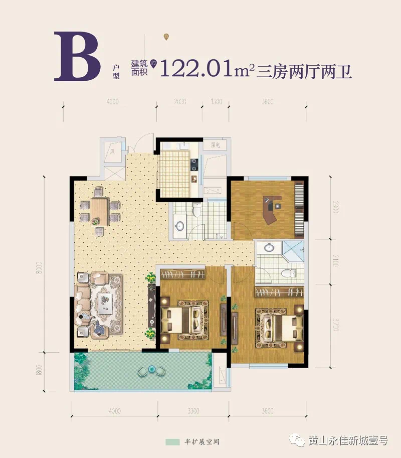 永佳·新城壹号二期,百米景观长廊,围合公园绿化,26层瞰景高层,122-138㎡奢适三房,南北通透,方正实用,宽敞主卧配备飘窗,景观阳台尺度开阔,餐客一体,打造大气尊荣的舒适生活。