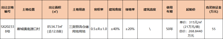 歙县1宗仓储用地挂牌出让