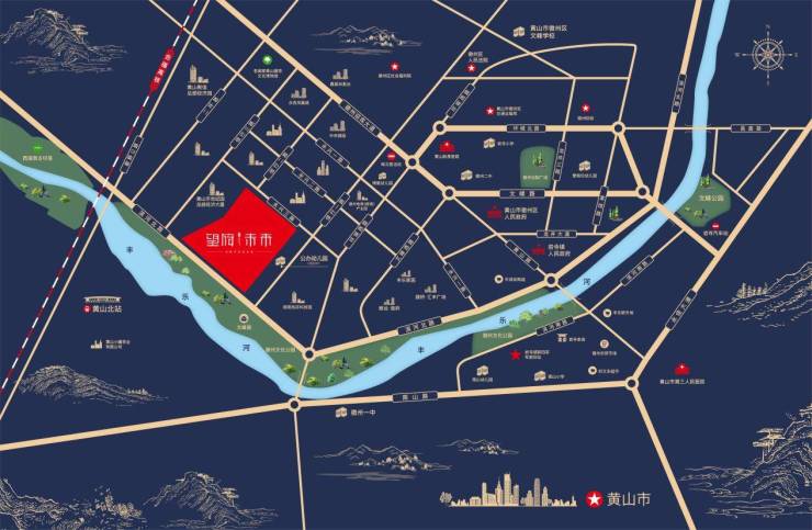 用珍稀的土地 ,创造出值得珍惜的产品。望府未来择址徽州区母亲河-丰乐河畔,对外俯瞰一线河景,享徽州文化公园绿色鲜氧;对内遵循生态、人文、交融、健康的原则,打造丰富的中央园林景观,再搭配超宽楼间距以及交错分布楼座的空间规划,最大程度提高采光通风率,造稀贵的健康生态人居。