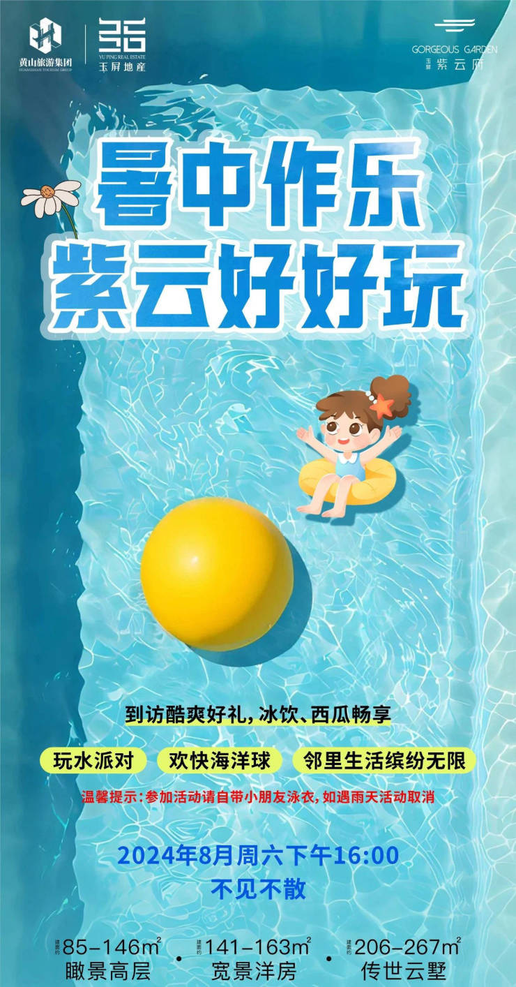 暑中作乐,紫云好好玩。到访酷爽好礼,冰饮、西瓜畅享玩水派对、欢快海洋球、邻里生活缤纷无限温馨提示:参加活动请自带小朋友泳衣,如遇雨天活动取消2024年8月周六下午16:00不见不散玉屏紫云府85-146㎡瞰景…