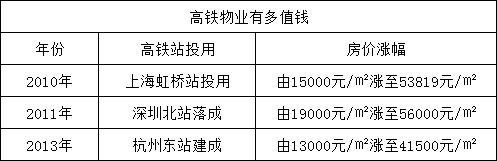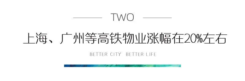 据不完全统计,2011年以来,全国高铁周边物业价格每年都有近30%的增长,广州、上海等一线城市涨幅保持在20%左右。同时,同类型的物业越靠近高铁站,价格还有10%-20%不等的提升空间,高铁无疑已经成为了衡量一个城市物业价值与升值潜力的重要标识。