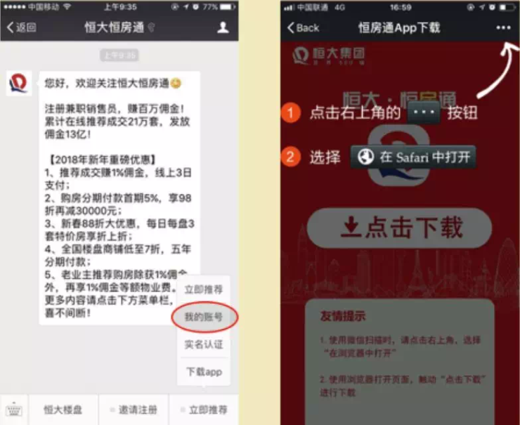 1、 完成注册后,关注微信公众号。进入点击“立即推荐-我的账号”进行登录;或点击“立即推荐-下载app”完成下载进行登录。