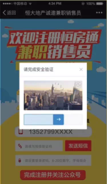 2、 点击“发送短信”,拖动小方块,完成安全验证。