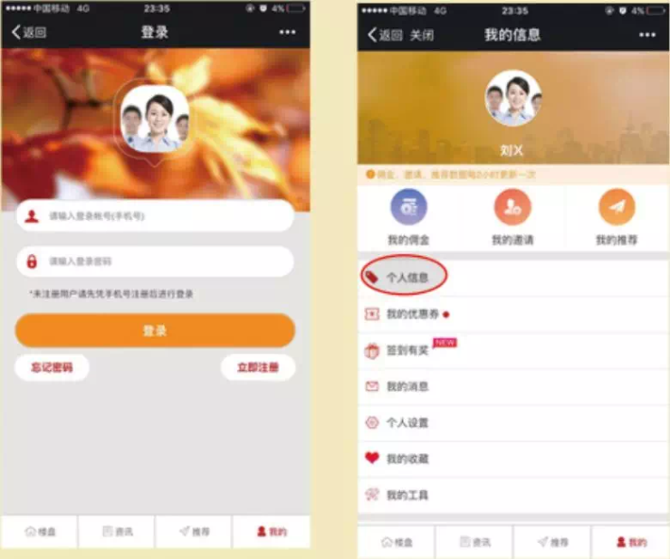 2、 输入手机号及密码登录后,点击“个人信息”页面。