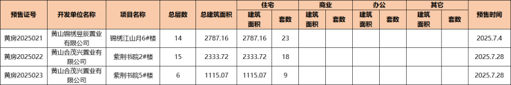 7月,黄山中心城区锦绣江山月、紫荆书院2盘获预售证,新增可预售住宅房源50套,新增可预售住宅面积6235.95㎡。