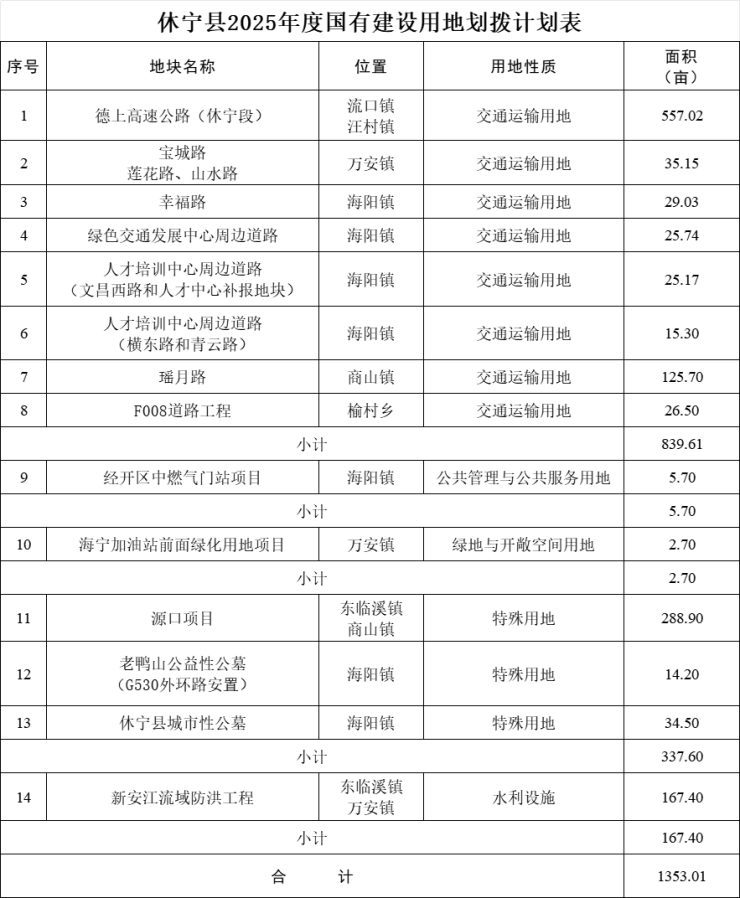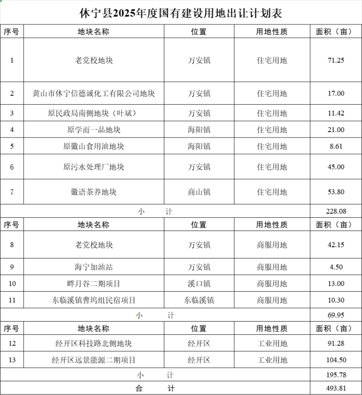 休宁县2025年土地供应计划出炉,住宅用地228.08亩
