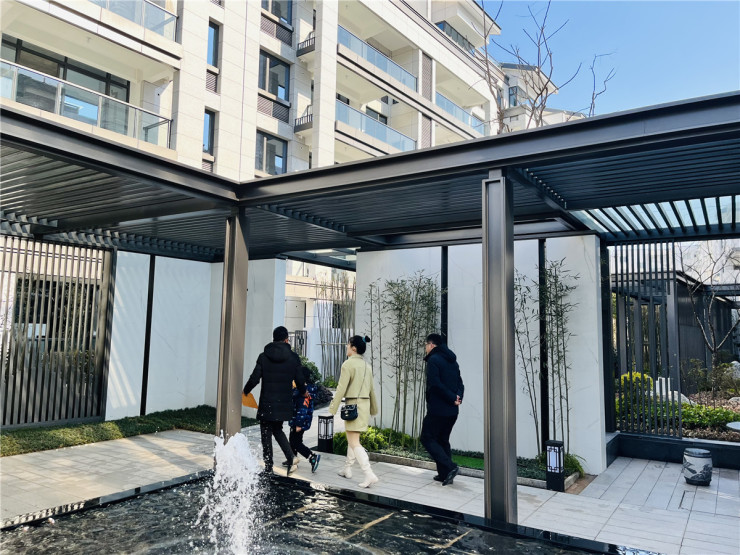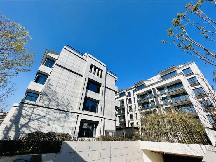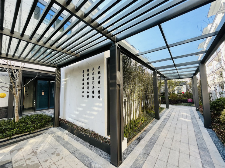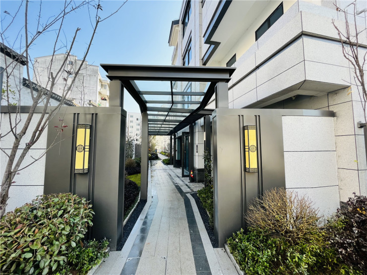 外立面采用全干挂石材,简约大气;入户门采用步阳防火防盗甲级安全门+指纹锁,窗户选材上,采用断桥铝、三玻两腔工艺同时还配备复框;景观绿化上,采用徽派及苏州园林相结合办法,再以水为引、以舟为形,通过风雨连廊、折线型景观参观动线的设计,在有限的空间内打造曲径通幽的景观体验。整个项目无论是建筑用材、用料还是景观设计,均采用高标准来进行打造,在黄山主城核心区域敬献一座低密、高端的品质社区。
