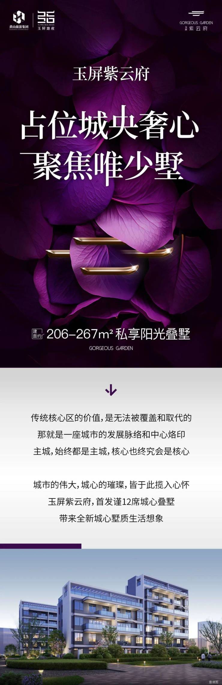 玉屏紫云府,占位城央奢心,聚焦唯少墅!建面约206-267㎡私享阳光叠墅。…