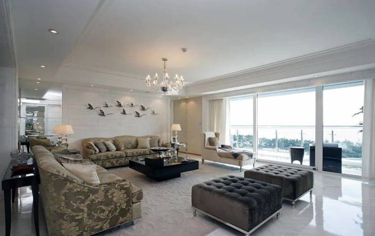 不仅享有真正的庭院空间,就产品的空间规划来看,江澜轩也是稀缺的“好物种”。市面上的叠院通常只做两开间,本质上就是“折叠起来的四开间洋房”。而江澜轩叠院则做到了三开间朝南的面宽尺度,巨幕采光一席难寻。约6.6米南向阔绰开间客厅设计,布局精妙,层次有序,宽敞明亮空间感十足,置身其间,气度与身份感不彰自显。