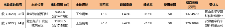 歙县2宗工业用地成交,出让面积合计32.01亩