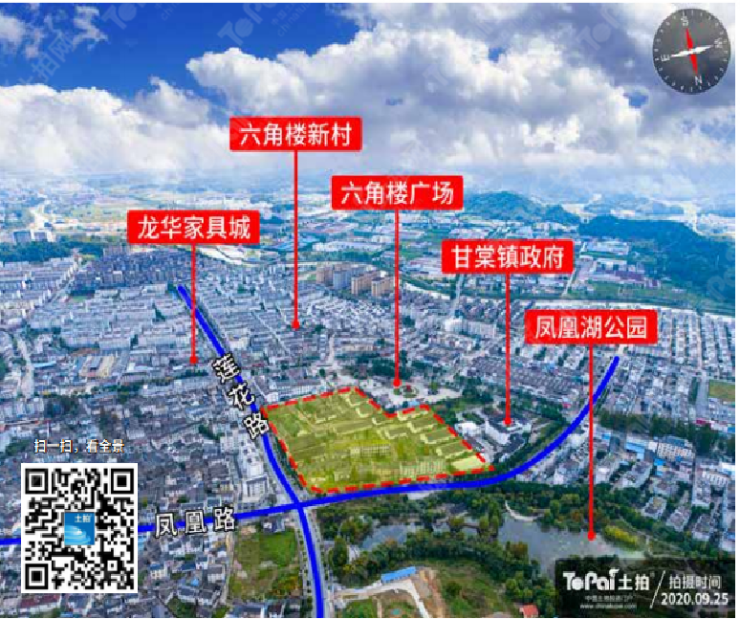 地块位于甘棠镇政府东侧,区域周边环境优,北有凤凰湖公园,西有六角楼文化广场,属老城区,人口密集度高,设施齐全。距黄山北门直线距离仅10.7km,距正在建设高铁黄山西站仅3.6km,交通便利。