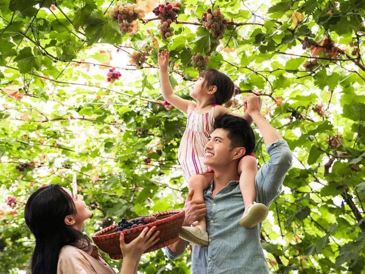 挑选一个清闲的午后,从都市生活的奔忙中抽离,和孩子一起背上竹篓,带起草帽,在果岭里呼吸自然的空气,采摘下较新鲜的蔬果,享受“晨兴理荒秽,带月荷锄归”带来的充实感,重拾农耕快乐,收获一场丰收的喜悦之情。