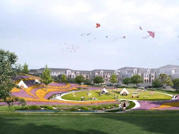 看风景不必去追逐远方,而是在家眺望,溪上桃源刚好能把诗与远方装进生活里。依托原始地形,在坡地上打造七彩花带,一直延伸到林地。沐浴着微风,在花海里徜徉,在心型草坪里邂逅浪漫,令人怦然心动的斑斓色彩,许四季一场梦幻之境。
