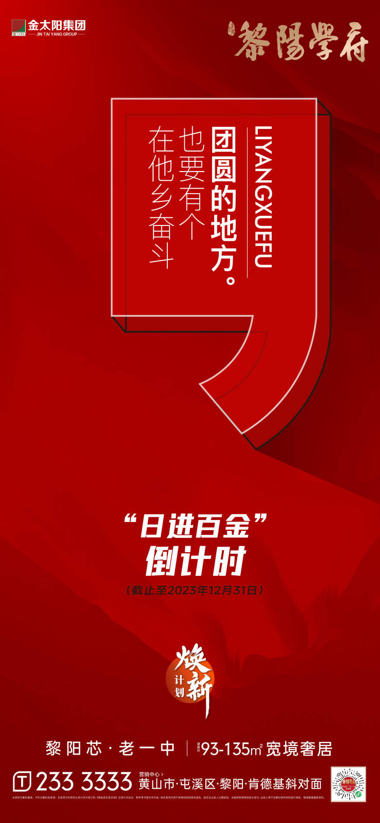 在他乡奋斗也要有个团圆的地方!黎阳学府焕新计划,日进百金”倒计时(截止至2023年12月31日)。黎阳学府,黎阳芯·老一中,建面约93-135㎡宽境奢居热销中,新品即将入市,难得恒产,人生顶藏。…