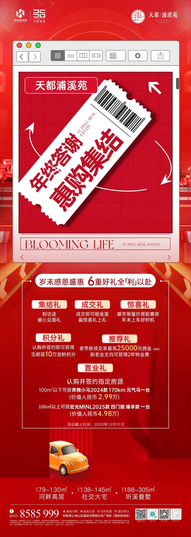 天都浦溪苑,岁末感恩惠购,6重好礼全力以赴,活动时间截止至12月31日。