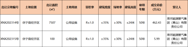 休宁县2宗公用设施用地成交