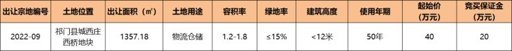 祁门县城西庄西桥1宗物流仓储用地挂牌,出让面积1357.18㎡