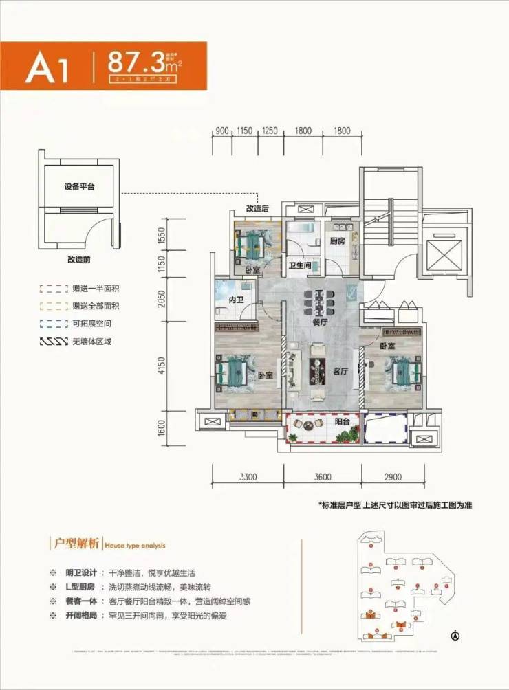 以科学合理的尺度设计换取更多的日照时长,告别“握手楼”,大尺度宽绰的楼间距、高大面宽,三门采光,错开的楼栋格局光合户型,体现科学人性设计和对住户隐私的考虑。在包容邻里隐私的基础上还能享受清风和阳光的拜访。