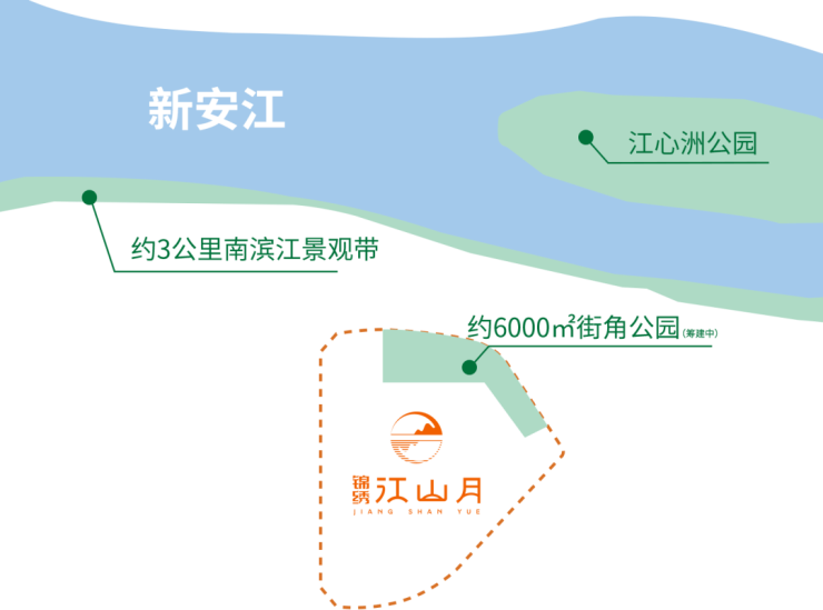 都市人居的自然需求与日俱增,锦绣江山月毗邻公园:一江”邻近新安江约160m,“一带”南滨江景观带、“双园”家门口口袋公园(筹建)及江心洲生态公园等多个城市人文生态坐标人文雅境,满足都市人居的自然价值。