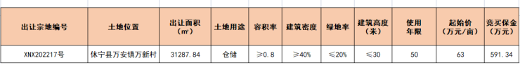 休宁1总仓储用地挂牌,出让面积46.93亩