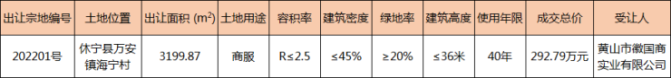 休宁县1宗商服用地成功出让,成交总价292.79万元