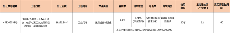 黄山中心城区1宗工业用地挂牌出让