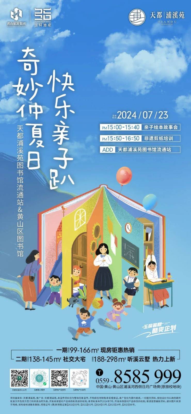 奇妙仲夏夜,快乐亲子趴,天都浦溪苑图书馆流通站,7月23日PM15:00-15:40 亲子绘本故事会、PM15:50-16:50 非遗剪纸培训等你来。