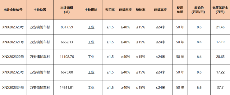 休宁县5宗工业用地集中挂牌
